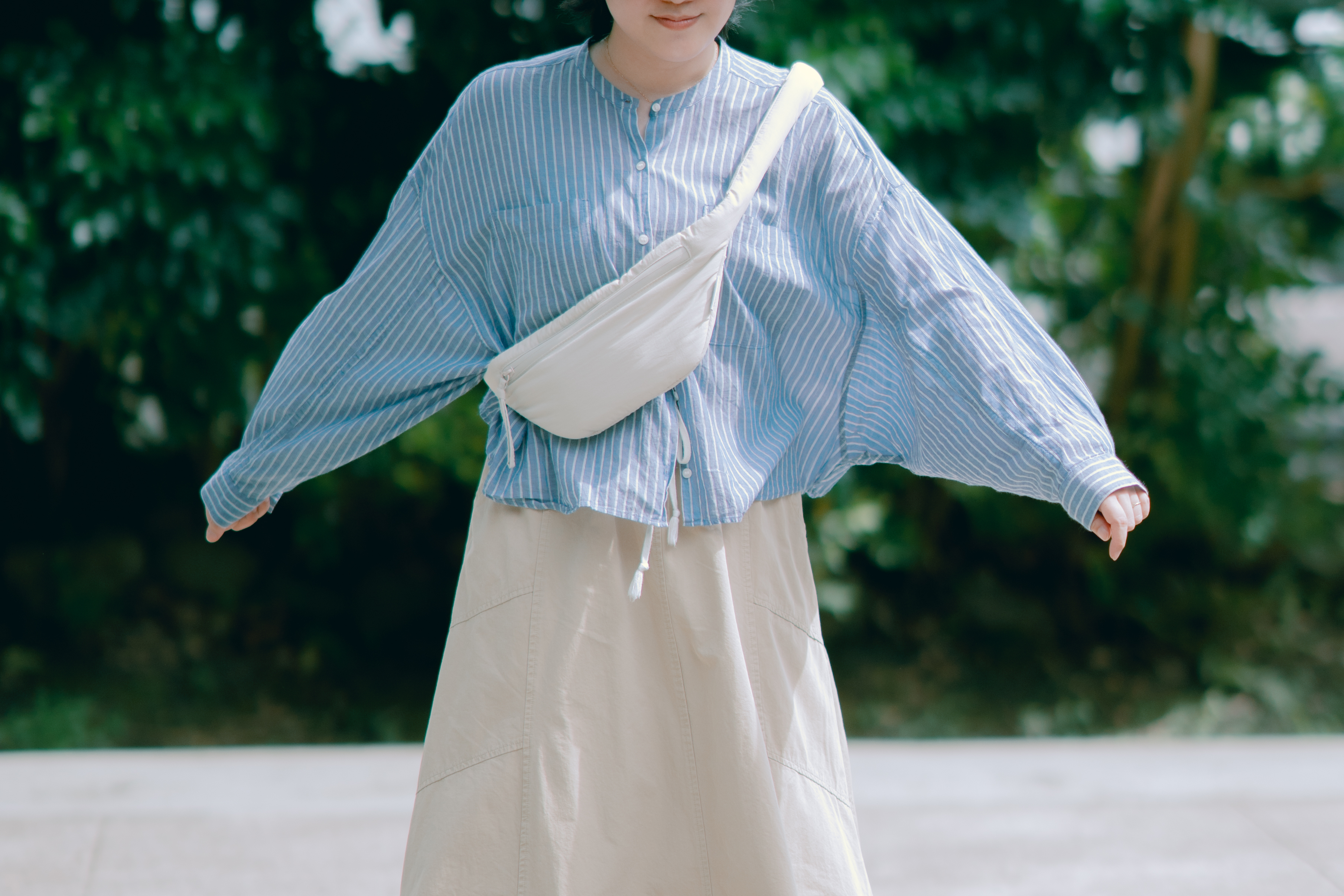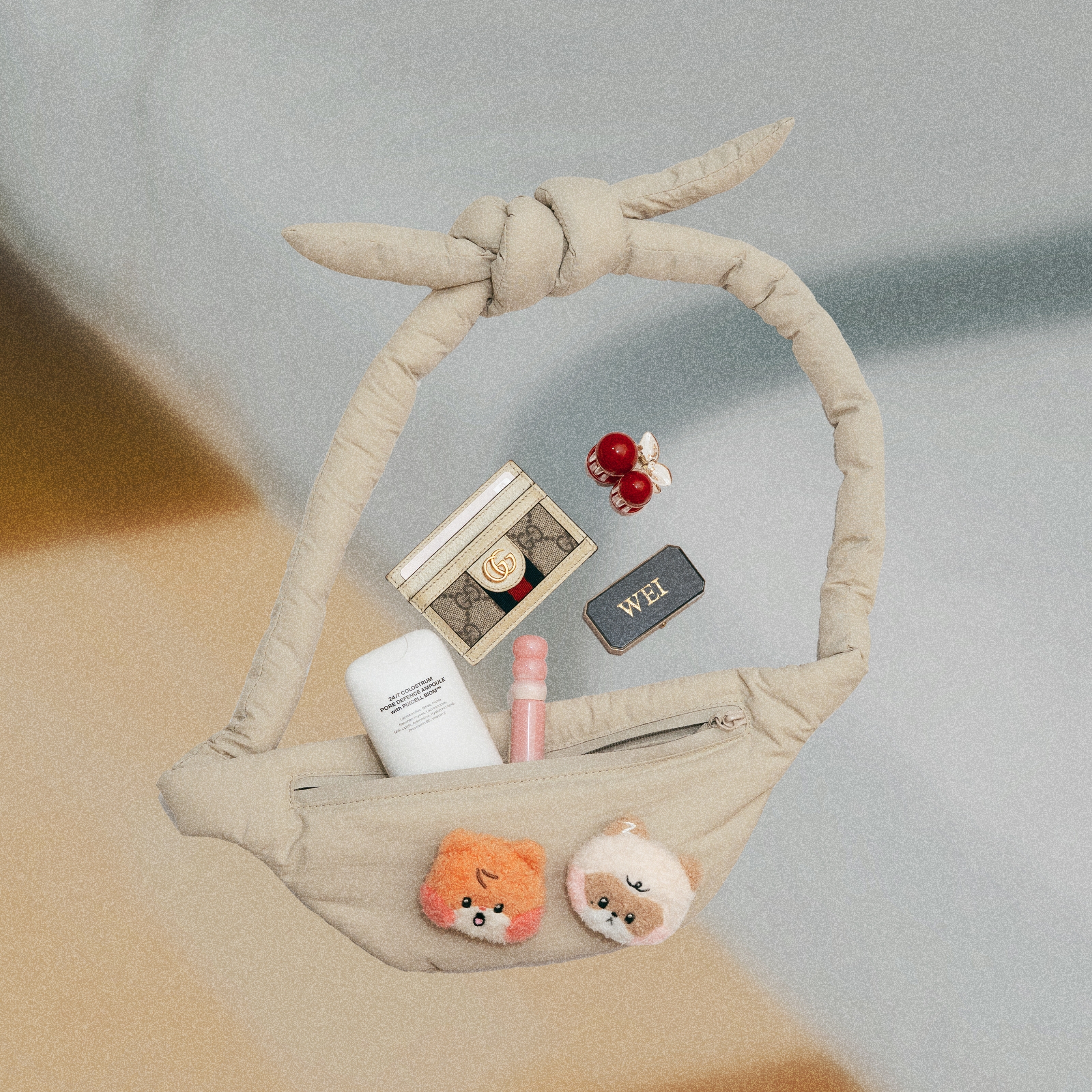 - 外型極簡、俐落卻又不失可愛的蓬蓬腰包,